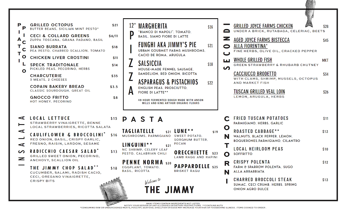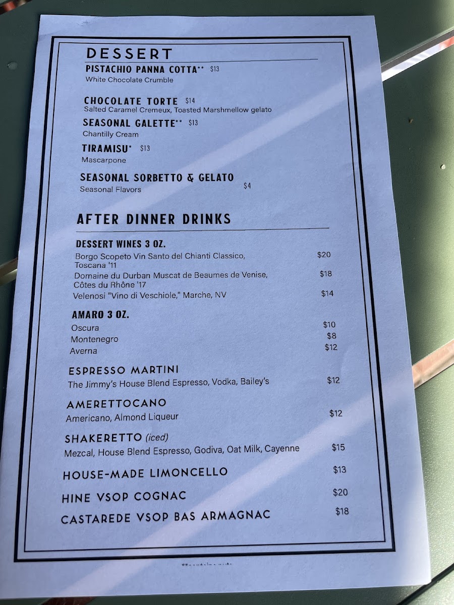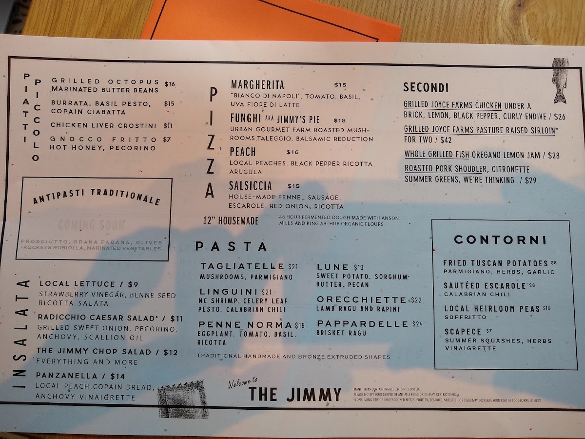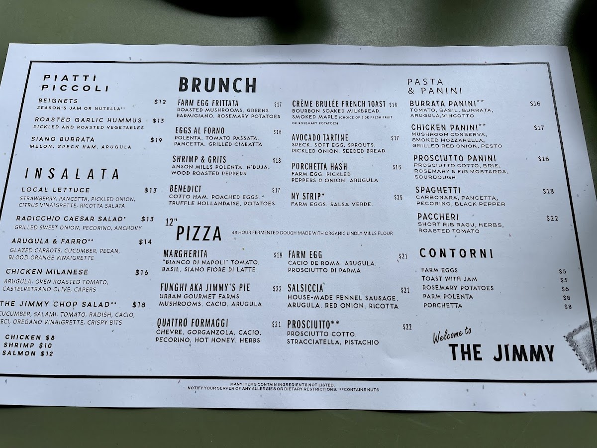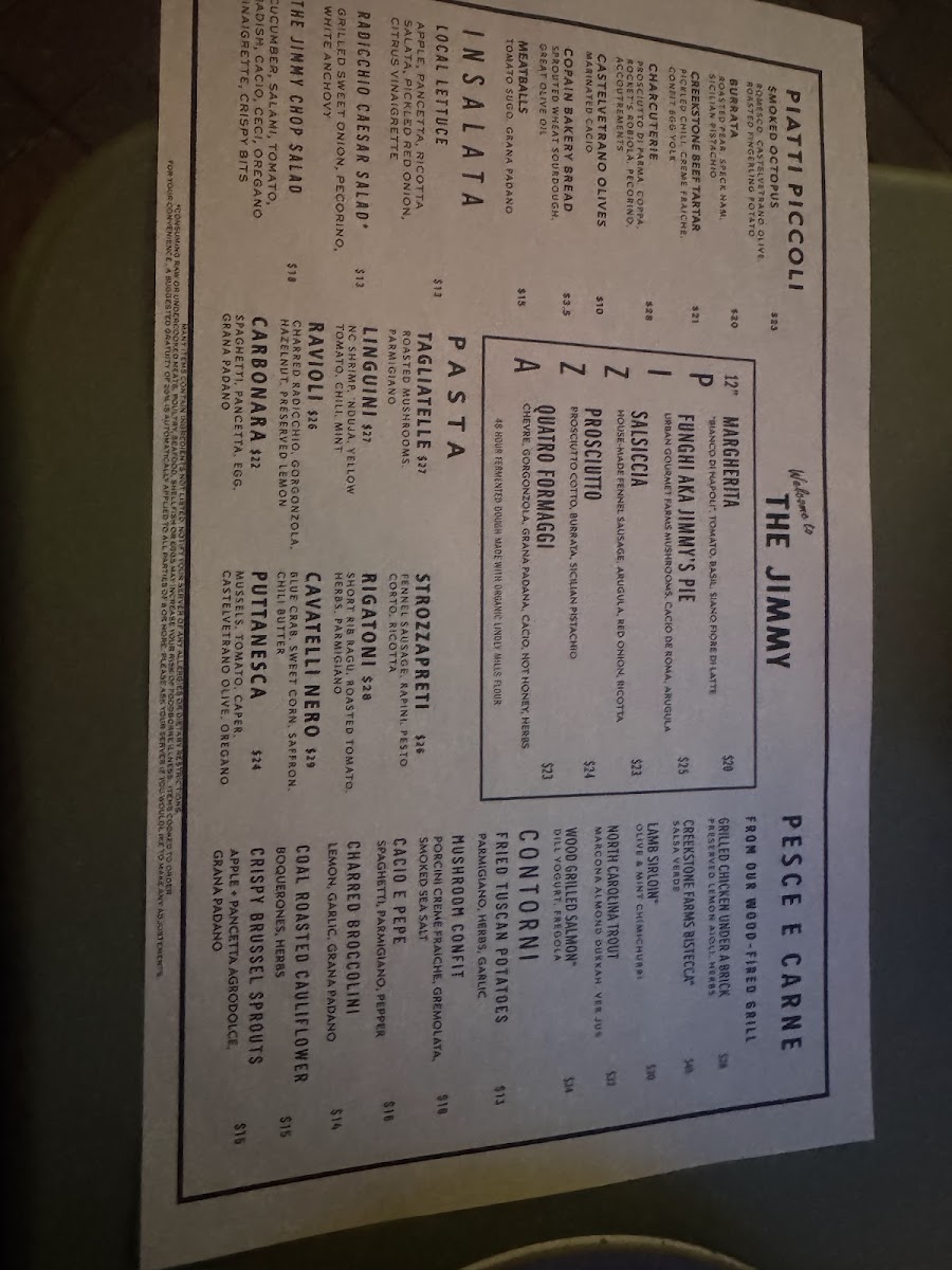 Guests often enjoy The Jimmy’s offerings alongside a carefully chosen wine list or a well-crafted cocktail, such as their signature Bloody Mary. The menu encourages leisurely meals, whether it’s a midweek dinner with family or a weekend evening on the patio. Favorites like mushroom pizza, the Jimmy Chop Salad, and rich rigatoni short rib ragu complement the inviting, neighborhood vibe, making it a comfortable place to unwind.